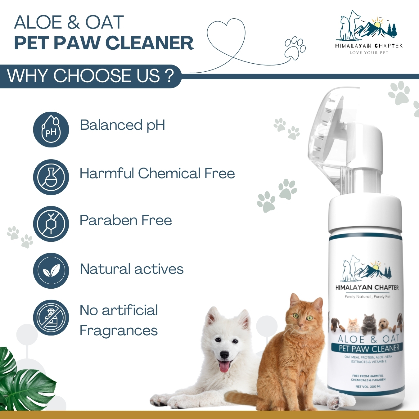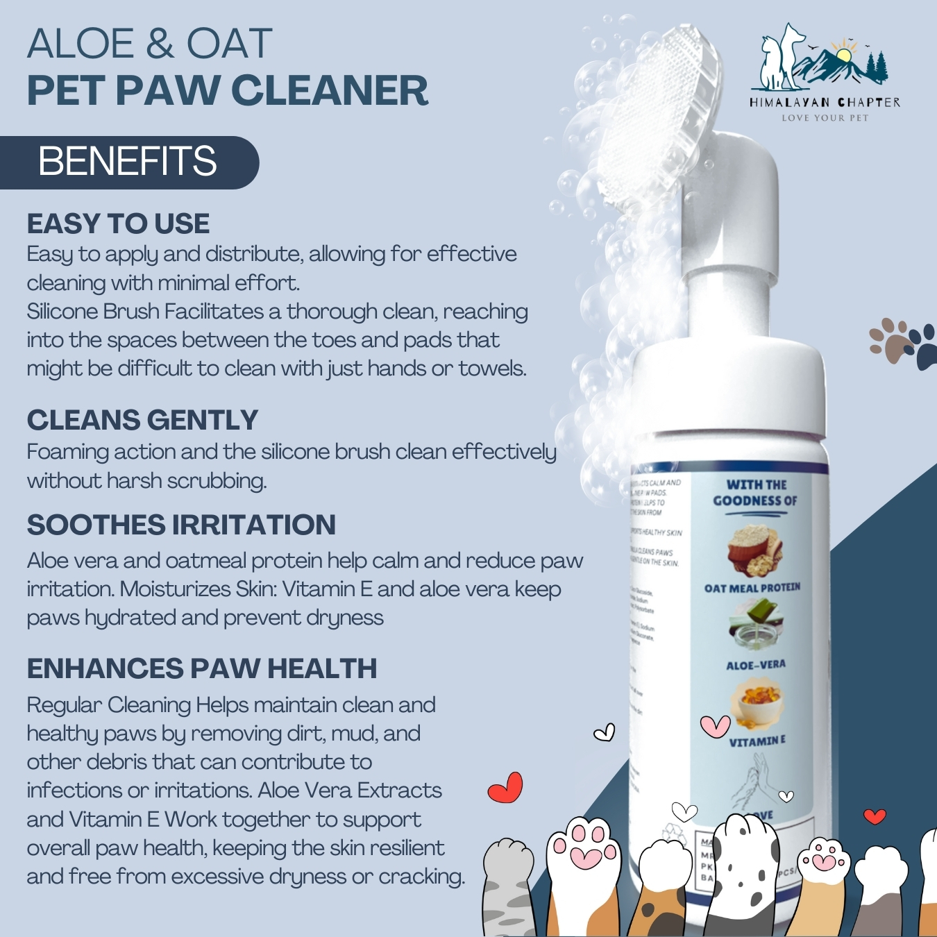 Gently cleanse your pet’s paws with Aloe and Oat Pet Paw Cleaner by Himalayan Chapter. Infused with soothing aloe and nourishing oat extract, it removes dirt and grime while leaving paws refreshed and hydrated.