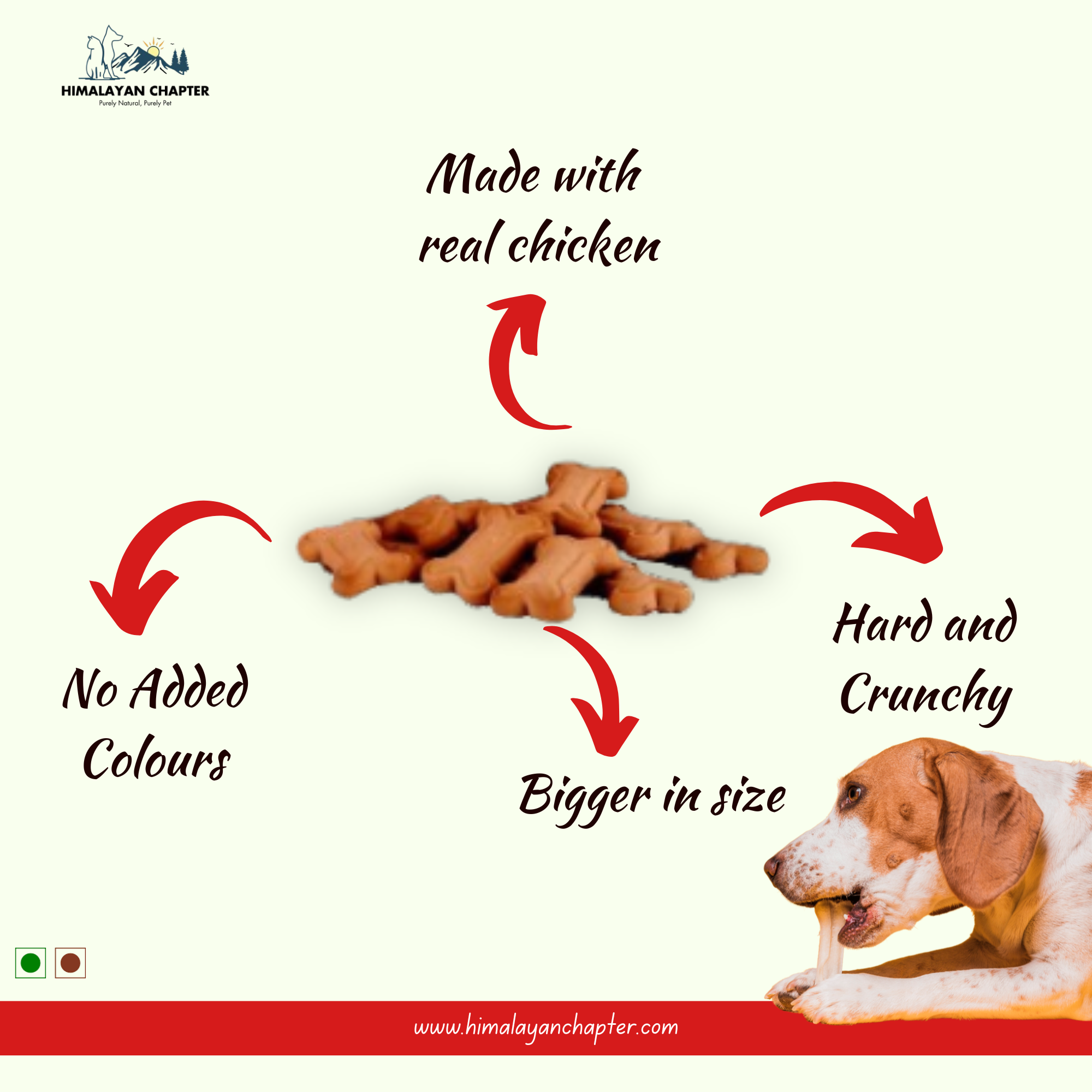 Our Dog Adult Biscuits - Non-Veg are crafted to provide your canine friend with a hearty, meaty treat. These big biscuits are designed to satisfy the cravings of adult dogs who enjoy a non-vegetarian diet. Made with premium animal-based ingredients, these biscuits support your dog?s health and delight their taste buds.