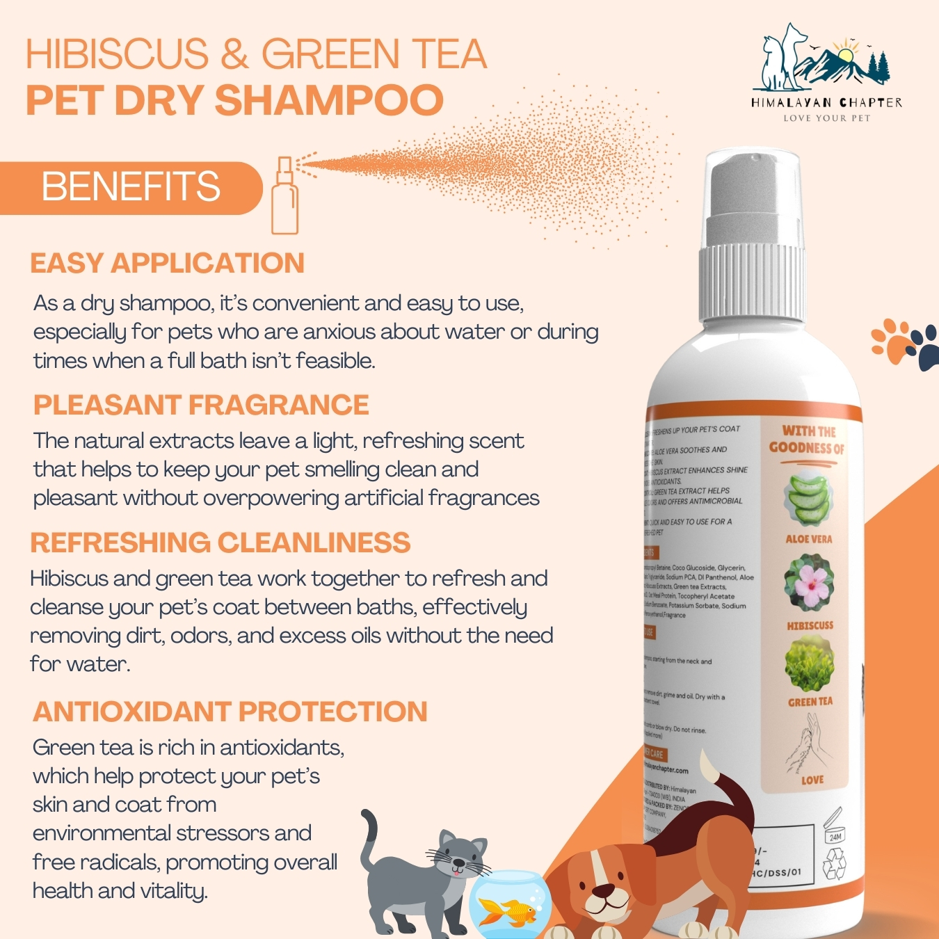 The Pet Dry Shampoo Hibiscus and Green Tea & Blue Elixer Combo is a premium grooming duo crafted for busy pet parents seeking a hassle-free way to maintain their pet's hygiene. Infused with the natural goodness of hibiscus and green tea, the first shampoo revitalizes fur and promotes a healthy coat, while the Blue Elixir formula provides a deep, refreshing clean with a unique, calming fragrance. These no-rinse shampoos are easy to use—simply spray, massage, and towel off—making them perfect for quick cleanups or pets who dislike traditional baths. Free from harsh chemicals and enriched with gentle, pet-safe ingredients, this combo keeps your furry friend’s coat soft, shiny, and odor-free. Suitable for dogs and cats of all breeds and ages.