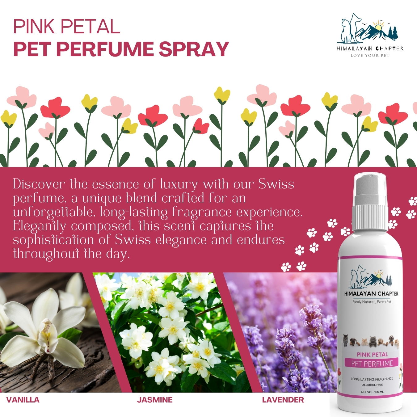 Introduce your furry companion to Pink Petal, a premium pet perfume by Himalayan Chapter. Designed with love and care, this pet-safe formula ensures your pet enjoys a soft, lingering floral aroma without irritation. Whether it’s a special outing or everyday pampering, Pink Petal adds a touch of elegance and freshness, leaving your pet smelling heavenly and feeling cherished. Safe for all breeds, Pink Petal is the perfect choice to complement your grooming routine.
