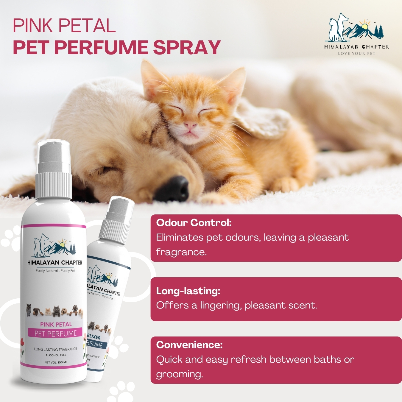 Elevate your pet’s scent with Pink Petal, a luxurious pet perfume by Himalayan Chapter. Crafted with pet-safe ingredients, it offers a gentle floral fragrance, keeping your furry friend fresh and delightful all day long.