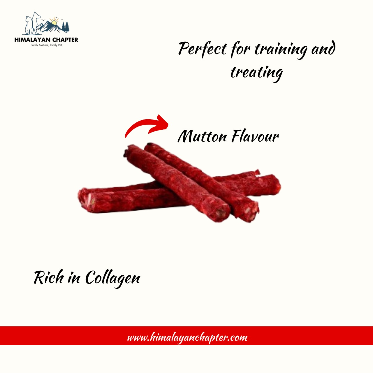 Elevate your pet's treat time with our Raw Hide Munch Stick in Mutton Flavor. This premium chew stick is crafted to provide both delicious flavor and essential dental benefits, making it a perfect choice for your furry friend.
