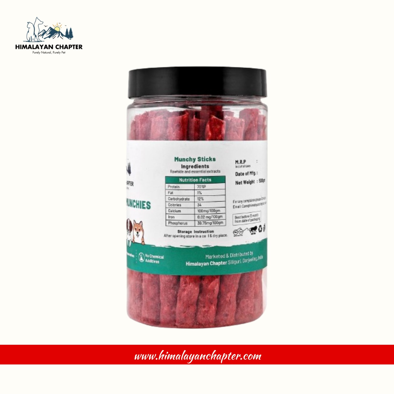 The mutton-flavored munch stick is a delicious and nutritious treat crafted for dogs of all breeds and sizes. Made from high-quality ingredients, it features a savory mutton flavor that dogs love. Designed to satisfy natural chewing behavior, it also helps promote dental health by reducing plaque and tartar buildup. Free from harmful additives, it’s a safe, flavorful, and engaging option for training, rewarding, or simply providing entertainment. These munch sticks are available in various sizes and are perfect for enhancing your dog's overall chewing experience while delivering a taste they’ll crave.