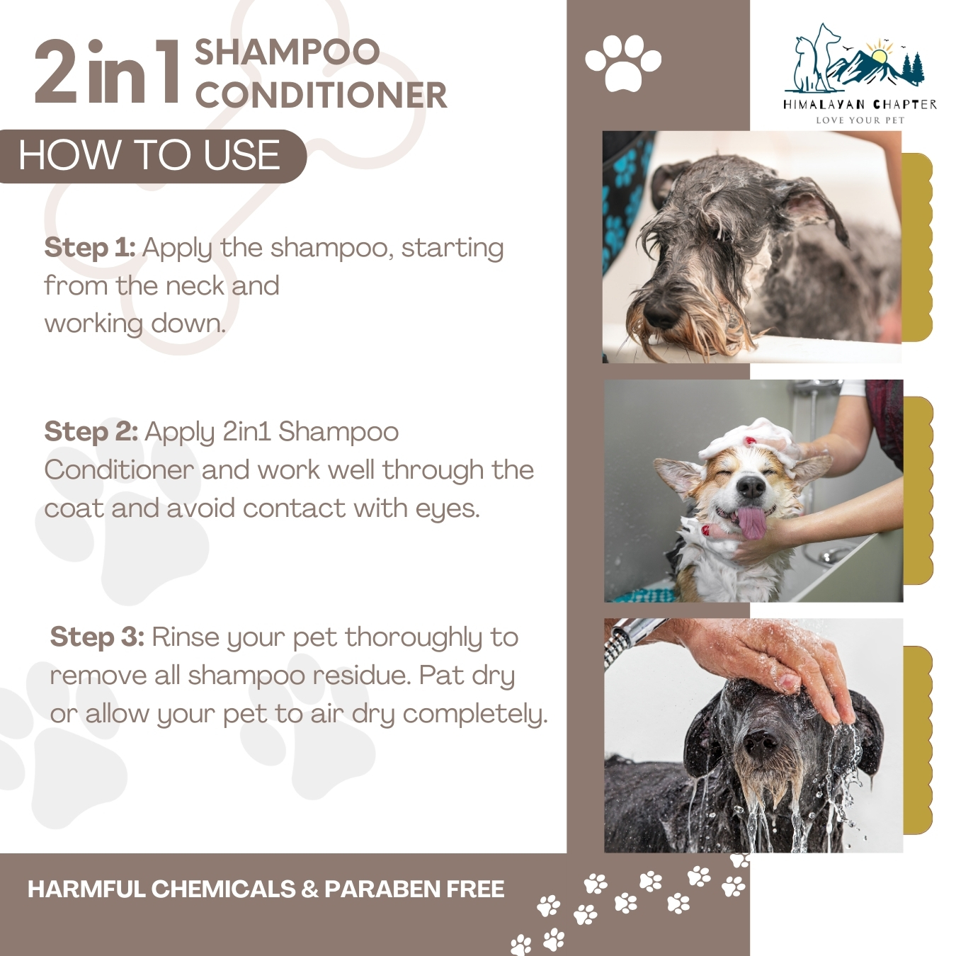 Simplify your pet’s grooming routine with our 2-in-1 Pet Shampoo & Conditioner, an all-in-one formula designed to cleanse, soften, and nourish your pet's coat in one easy step. This innovative product eliminates the need for separate shampoo and conditioner, saving you time while providing your pet with a thorough and luxurious bath.