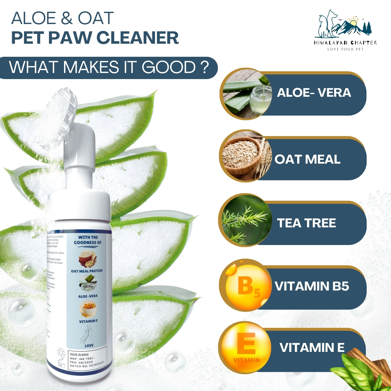 Gently cleanse your pet’s paws with Aloe and Oat Pet Paw Cleaner by Himalayan Chapter. Infused with soothing aloe and nourishing oat extract, it removes dirt and grime while leaving paws refreshed and hydrated.
